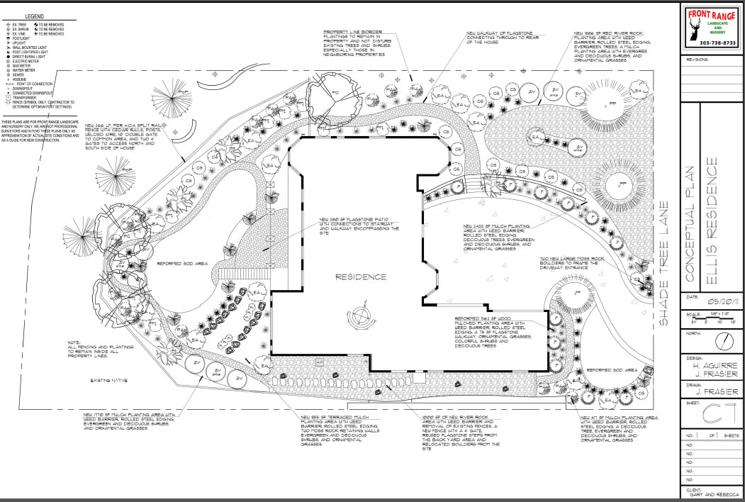 The resident for this project had recently moved to Colorado when we began the design process. The existing landscape suffered from neglect but had potential. Front Range Landscape started with a massive demolition and removal of much of the existing plant materials, ground cover, and other landscape infrastructure. We worked directly with the resident to install a new landscape that was as beautiful as the house and the surrounding area. Flagstone walkways and steppers provide circulation throughout the area. New plantings will create multiple seasons of interest and complement the house facade. This was an extensive project and excellent example of all the landscape services we offer.